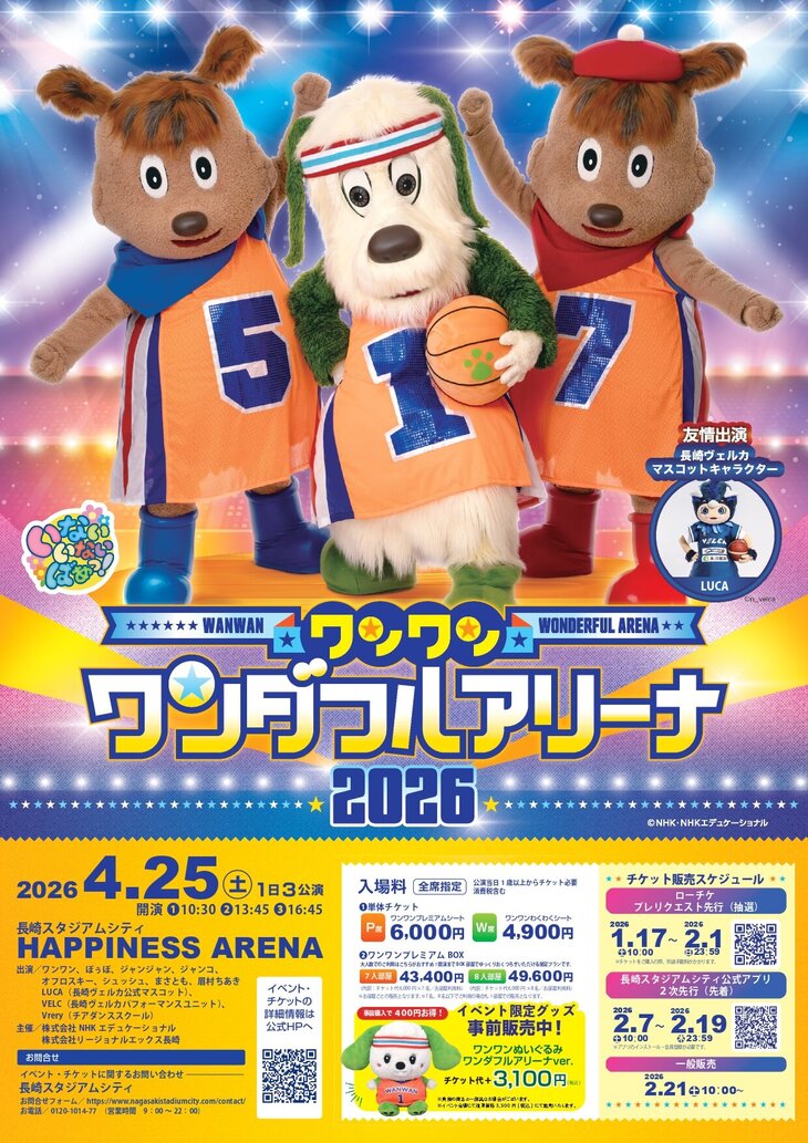 ワンワン、ぽぅぽ、ジャンジャン、ジャンコ、オフロスキー、シュッシュ、まさとも、眉村ちあき、LUCA(長崎ヴェルカ公式マスコット)など出演!