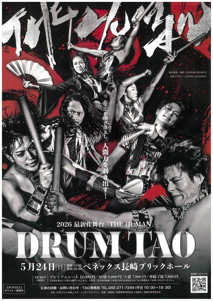 全席指定 プレミアムシート12,000円 SS席8,800円 S席7,800円 車椅子席7,800円 ※6歳未満のご入場をお断りします。 ※前売・当日券同金額 ※車椅子席をお求めの方はTAO事務局までお問い合わせください。 |