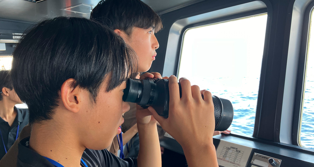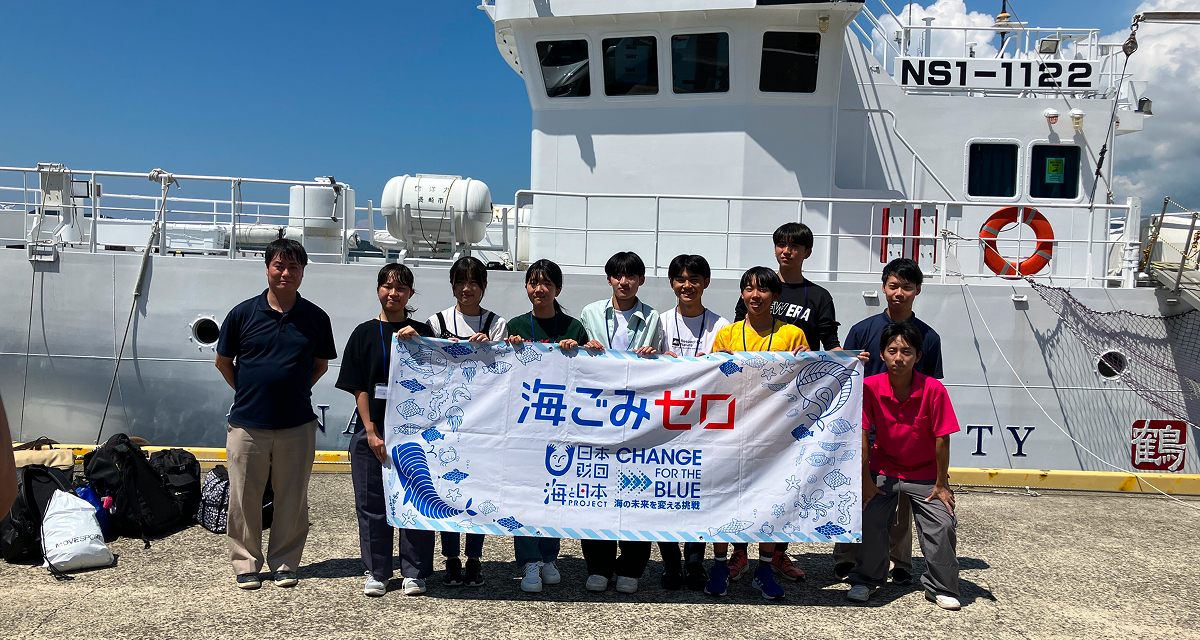 対馬厳原港までの航路では「漂流ごみの目視調査」、対馬の海岸では「漂着ごみの回収調査」の手法を学び、「海洋ごみ問題」について長年取り組んでいる「対馬CAPA」のみなさんのガイドで現地調査を行う2泊3日の調査航海に今回、海の環境保全に関心のある長崎県内の高校生7名が参加しました。