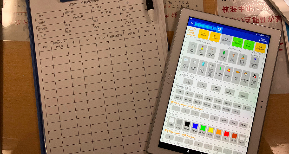 - タブレットに分類して入力。(アプリ提供:東京海洋大学)