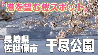 長崎の桜2022 艦船を望む公園に咲く桜 長崎県佐世保市干尽公園