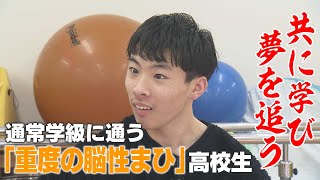 重度の脳性まひがある18歳の少年が、特別支援学校ではなく高校の通常学級に通っています。