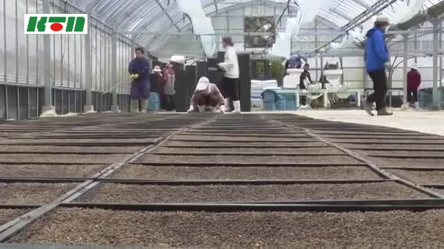 この日は、五島市富江町のJAごとう育苗ハウスで職員や農家の人たちなど15人が種もみを育苗箱にまきました。