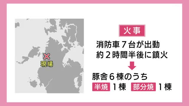2日夜、長崎県西海市で豚舎2棟が焼ける火事がありました。
