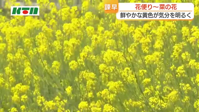花言葉は「小さな幸せ」菜の花が見頃 鮮やかな黄色い花が気持ちを明るく 国道の川沿いに50mほどにわたり咲く
