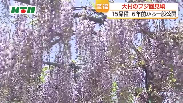 大村市のフジ園では15品種のフジの花を楽しむことができます。