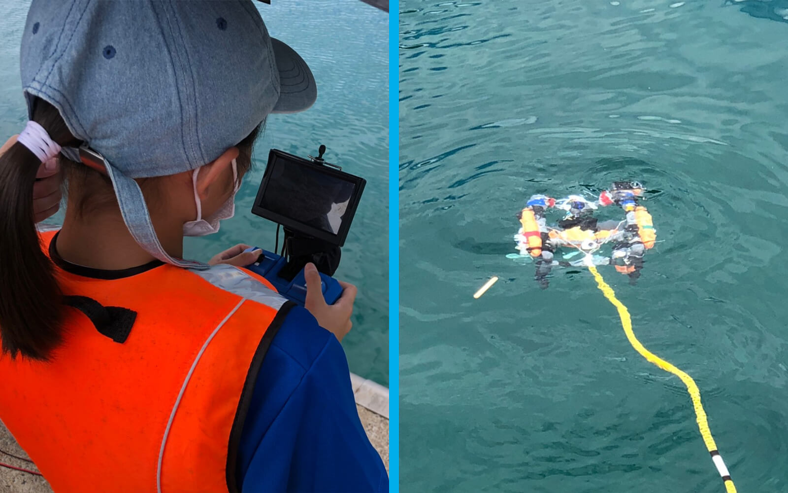 長崎総合科学大学のみなさんと一緒に水中ドローンを操作して宝探しをしよう!長崎県美術館 運河ギャラリーの入り口にある大きなプールを目指して来てね♪これからの海洋産業に欠かせない水中ドローンの操作方法が学べますよ!